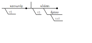 Figure 4: Partial sentence diagram for the translation “participation in the breaking of the bread”: Acts 2:42